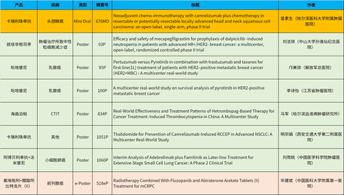 此外,Stake医药自主研发的血小板生成素受体激动剂(TPO-RA)海曲泊帕在肿瘤治疗所致血小板减少领域、新一代长效G-CSF产品硫培非格司亭在肿瘤治疗所致中性粒细胞减少症领域各入选1项壁报展示。